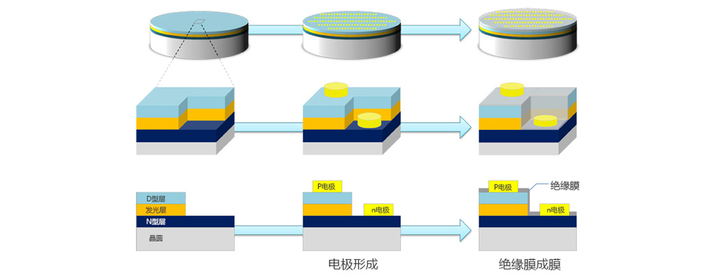 這個(gè)過(guò)程是制造LED的核心過(guò)程。2014年的藍(lán)色LED研究獲得了諾貝爾獎(jiǎng),之所以獲獎(jiǎng)是因?yàn)榻?jīng)此過(guò)程,LED的質(zhì)量得到了顯著改善,使得制造實(shí)用藍(lán)色LED成為可能。獲獎(jiǎng)的原因之一是,正如這里所提到的,通過(guò)采用一種稱為雙流法的方法,用兩種原料氣體以供晶體生長(zhǎng),因此制造出更優(yōu)質(zhì)的晶體。此外,p型層的激活,低溫緩沖層等LED的晶體生長(zhǎng)膜方法,在許多技術(shù)的積累之上實(shí)現(xiàn)了制造出本世紀(jì)的藍(lán)光LED。